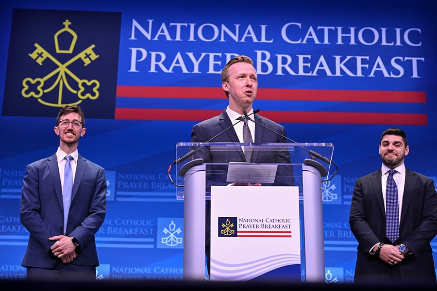 U.S. Domestic Policy Director Vince Haley read a message from President Donald Trump. About a dozen Catholic U.S. lawmakers, including U.S. Speaker of the House Mike Johnson and House Majority Leader Steve Scalise, were present during the Prayer Breakfast that celebrated American Catholic accomplishments.